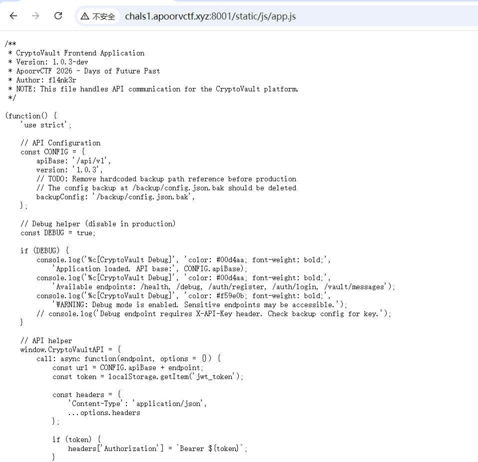 看到最后应该是要查看message,而message要admin的jwt,这又是一个jwt伪造,然后在bak中看到api key