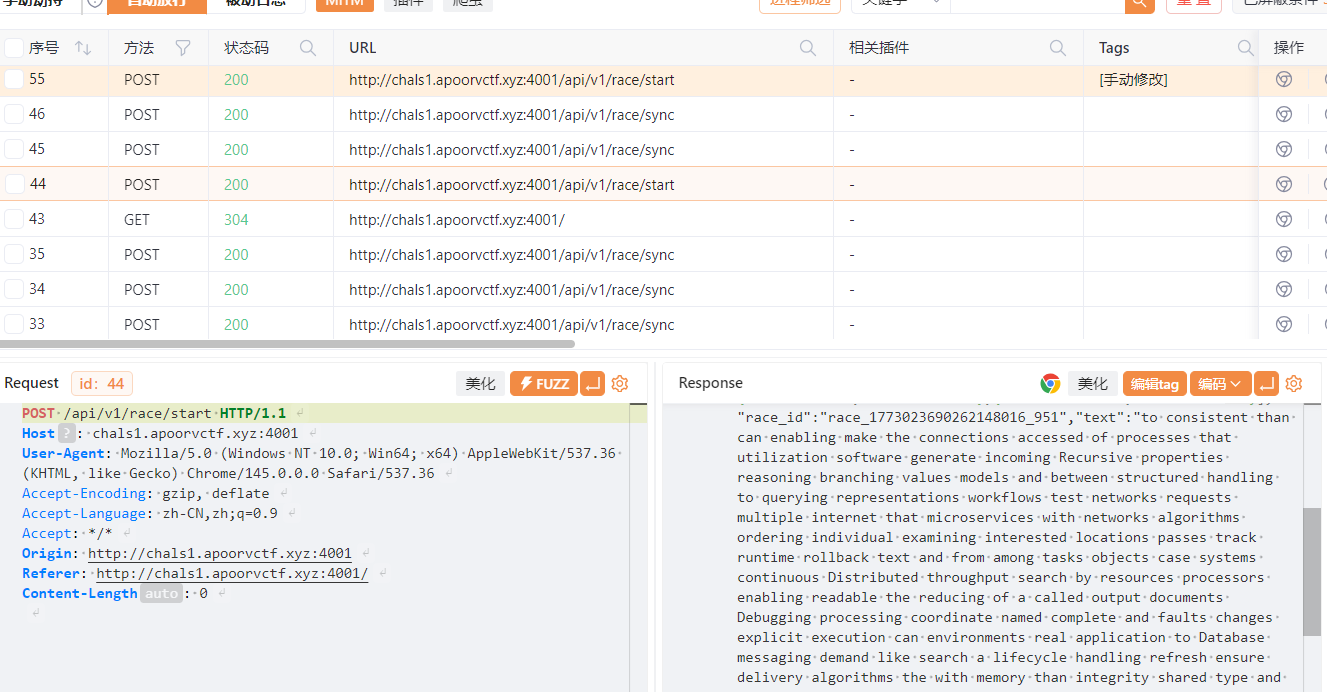 def solve_race() : print( "[*] Starting race..." ) start_url = f"{BASE_URL}/api/v1/race/start" try : start_response = requests.post( start_url , timeout=10 ) start_data = start_response.json() except Exception as e : print( f"[-] Failed to start race: {e}" ) return