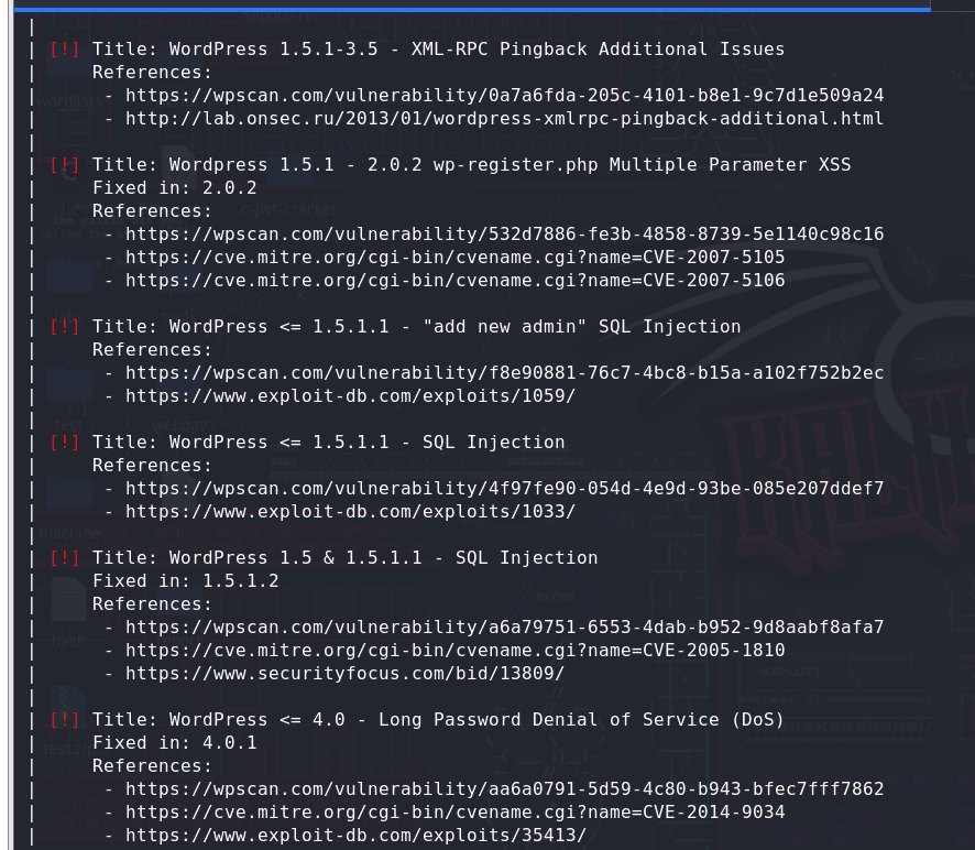 wpscan扫出来也是这些漏洞