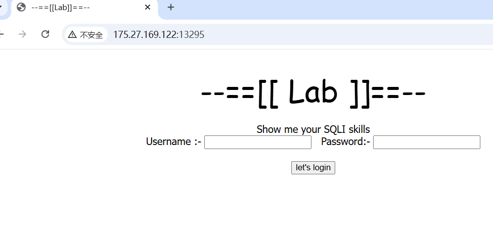 echo "you are logged in :)"; header('Location: panel.php', true, 302); } else { echo '<div align=center style="margin:30px 0px 0px 0px;"> <font size=8 face="comic sans ms">--==[[ Lab ]]==--</font> <br><br> Show me your SQLI skills <br> <form method=post> Username :- <Input type=text name=un>   Password:- <input type=password name=ps> <br><br> <input type=submit name=login value="let\'s login">'; } if(isset($_POST['login'])) { $uname=str_replace('\'','',urldecode($_POST['un'])); $pass=str_replace('\'','',urldecode($_POST['ps'])); $run='select * from auth where pass=\''.$pass.'\' and uname=\''.$uname.'\''; $result = mysqli_query($conn, $run); if (mysqli_num_rows($result) > 0) {