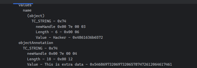 通过 SerializationDumper 分析 16 进制数据,可以发现 Java 序列化流中有一个特殊的区域: