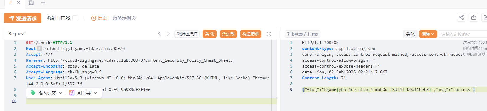 - 执行响应:浏览器下载完这段 JS,立刻执行它。这本质上就是调用了你在第 3 步定义的函数,并将包含 Flag 的数组作为参数传了进去。